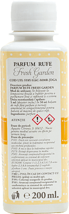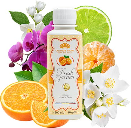 „Oamenii poartă în suflet grădini”. Noi am avut pur și simplu grijă să te ajutăm să-ți transformi olfactiv fiecare obiect vestimentar într-o veritabilă grădină, după fiecare spălare, cu ajutorul unui parfum pentru țesături aparte pe care, sugestiv, l-am numit Fresh garden! Notele sale de vârf însumează mirosul revigorant al fructelor scăldate în apă proaspătă, accentuându-le aromele bogate și complimentându-le cu ajutorul tonurilor de aldehide și cyclamene pentru a compune o simfonie a simțurilor pe ritmuri răcoritoare. Elegante și discrete, notele de mijloc ale parfumului de rufe Fresh garden radiază eleganță și optimism, bucurându-se de aromele nobile ale iasomiei și orhideeii, precum și de pasionalele tonuri de trandafir, lavandă și ylang ylang. La bază, santalul îmbibat în ambră și inconfundabilul mosc alb completează o „grădină” pe care să o iei cu tine oriunde ai merge. Și de care să te bucuri în fiecare zi.