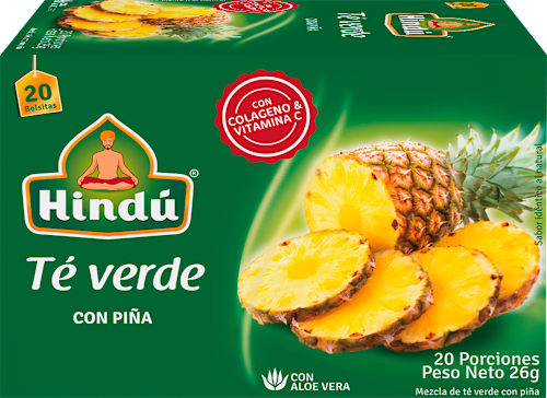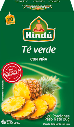 Ceai verde, ananas deshidratat, aromă identică cu cea naturală de ananas, vitamina C (acid ascorbic 2,3%), colagen, aloe vera (aromă naturală), acid citric (acidulant).