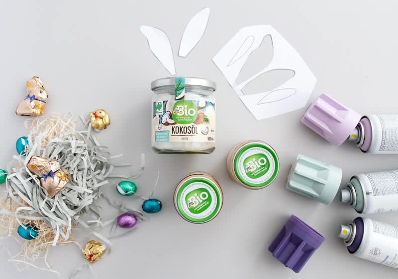 O dată pe an, Iepurașul de Paște are un rol foarte important. În Duminica Paștelui are voie să ascundă cadouri și dulciuri colorate în cuiburi mici, pe care copiii trebuie să le găsească. Dar nu întotdeauna trebuie să fie un cuib tradițional realizat din crenguțe sau coșulețe. În acest an, încercați ceva complet nou împreuna cu copiii dumneavoastră sau ca o surpriză pentru ei: borcanele de sticlă goale sunt ideale pentru umplerea lor cu iarbă, iepurași de ciocolată și ouă de Paște!